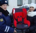 Омские автоинспекторы вручают родителям удерживающие устройства