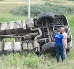 Из опрокинувшегося бензовоза вытекло 3,5 тонны топлива