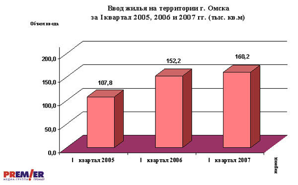 Решающим фактором роста средних цен на новостройки является рост объемов ввода жилья в городе. По данным Омскстата, на территории г. Омска за январь-март 2007 года организациями всех форм собственности и индивидуальными застройщиками (гражданами) введены в действие жилые дома общей площадью 160,2 тыс. кв. метров. По сравнению с соответствующим периодом 2006 года ввод жилья в городе увеличился на 5,3 процента.