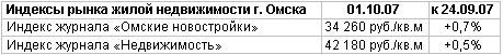 4 сентября 2007 г. Министерство регионального развития РФ утвердило новый размер нормативной средней рыночной стоимости 1 квадратного метра общей площади жилья по субъектам Российской Федерации, подлежащей применению органами власти для расчета размеров субсидий, выделяемых в соответствии с планами на IV квартал 2007 г., для всех категорий граждан, которым указанные субсидии предоставляются за счет средств федерального бюджета на приобретение жилых помещений для Омской области в размере 23 900 рублей, что на 18,9% больше, чем в предыдущем квартале.