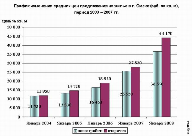 2007 год стал для Омска рекордным за последние 5 лет по уровню прироста стоимости жилья. Средний уровень стоимости жилья на вторичном рынке города с начала года вырос на 58,8% или на 16 350 руб./кв.м. На рынке новостроек темпы другие – +11 040 руб./кв.м или 43,2% с начала года.