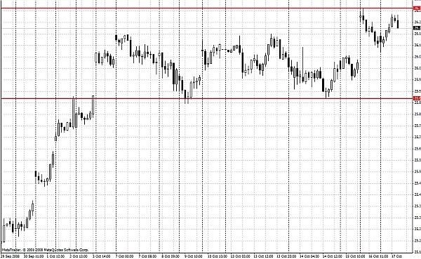 Консультационный управляющий Forex и международные рынки ИК "Финам" Вадим Титков уверен, что "цена доллара движется в четком диапазоне, нижняя граница которого - 25,80, а верхняя - 26,30. Однако, вероятно, что уже в ближайшее время после пробития уровня 26,50 возможен дальнейший рост до 27 рублей за один доллар. Технически это вполне возможно". Благоприятное воздействие на котировки валюты оказал "положительный ответ" по выкупу неликвидных акций. И в этом плане рынок работает "на ожиданиях". Однако, надо понимать, что в экономике США пока не видно никаких серьезных оснований для роста стоимости доллара.