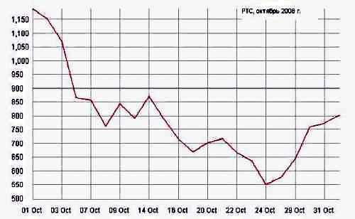В октябре индексы РТС и ММВБ в среднем "просели" на 30%. В итоге российский фондовый рынок по степени падения занял почетное третье место в мире. По мнению большинства экспертов, октябрь стал самым тяжелым месяцев в жизни фондового рынка: индексы опустились до уровней 2004 года.