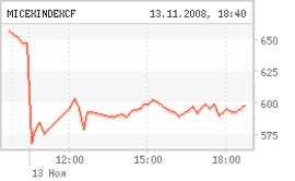 13 ноября российский фондовый рынок пережил очередную "распродажу". По итогам дня индекс ММВБ снизился на 7,62% (598,43 пункта), индекс РТС упал меньше - на 2,37% (619,91 пункта). В пятницу аналитики ожидают небольшой рост благодаря позитивной динамике российских компаний на лондонской бирже.