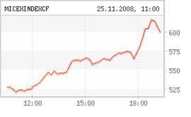 Открытие торгов 24 ноября прошло под девизом "Вверх и только вверх": уже через полчаса индекс ММВБ вырос на 3,5%, а РТС "работал" на уровне предыдущего закрытия. Инвесторы предпочли в этот день стратегию "покупать", благодаря чему российские акции стали дорожать. Причем, эта тенденция отмечена и на Лондонской бирже, где отечественные эмитенты продемонстрировали сумасшедший рост: бумаги "Татнефти" подскочили на 46,89%, расписки ОАО "Роснефть" выросли на 39,02%, "АФК Система" - на 33,75%, а ОАО "Газпром" - на 32%.