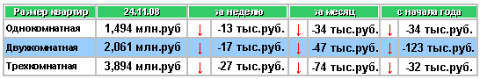 Двухкомнатные квартиры за неделю "сбросили" с цены 17 тысяч рублей, за месяц - 47 тысячи рублей, с начала года - 123 тысячи рублей. Таким образом, сегодня среднегородская цена "бэушной двушки" колеблется около 2,1 миллиона рублей.