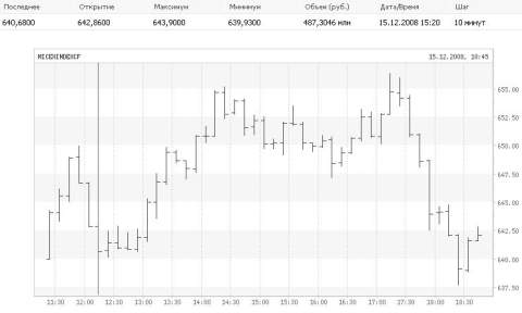 Покупки были и в акциях "металлургов": НЛМК (+4,66%), "Норильский никель" (+2,87%), ММК (+1,64%). Прибавили котировки российских банков: ВТБ (+4,13%), Сбербанк (+4,5%). В результате индекс РТС закрылся на уровне 689.17 пункта, прибавив более 5,5%. ММВБ поднялся на 3,47% до отметки в 642.08 пункта.