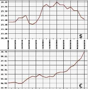 По итогам торгов ЕТС на ММВБ 17 декабря средневзвешенный курс доллара США с расчетами "завтра" составил 27,5424 рубля, что на 07 копеек меньше результата торгов 16 декабря - 27,6151 рубля. Средневзвешенный курс евро с расчетами "завтра" вырос с 37,8006 рубля до 38,8267 рубля.