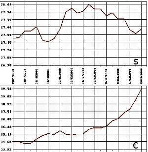 По итогам торгов ЕТС на ММВБ 18 декабря средневзвешенный курс доллара США с расчетами "завтра" составил 27,4146 рубля, что на 13 копеек меньше результата торгов 17 декабря - 27,5424 рубля. Средневзвешенный курс евро с расчетами "завтра" вырос на 1 рубль 10 копеек - с 38,8267 рубля до 39,9236 рубля.