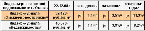 Индексы рынка жилой недвижимости г. Омска на 22.12.2008