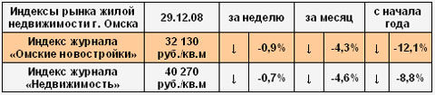 Индексы рынка жилой недвижимости г. Омска на 29.12.2008