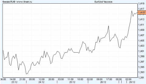 В течение трех первых дней недели у основных валютных пар резких движений не было. В понедельник, 22 декабря евро совершил попытку преодолеть уровень 1,4100. Задержаться выше этой отметки валюте не удалось, и она вернулась в диапазон 1,3900-1,4000, в котором и двигалась до праздников.