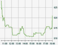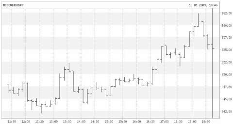 По итогам дня индекс РТС ушел в минус на 1,3% и закрылся на отметке 621 пункт. ММВБ показал +0,29% и остановился на уровне 655,16 пункта.
