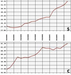 Банк России на 16 января 2009 года повысил официальный курс доллара США к рублю до 32,2135 рубля, а курс евро - до 42,3833 рубля. На торгах ММВБ 15 января средневзвешенный курс доллара с расчетами "завтра" составил 32,2271 рубля, курс евро - 42,4008 рубля.