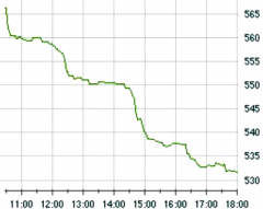 По итогам торгов РТС закрылся со снижением на 6,19% на отметке 531.66 пункта. Индекс ММВБ чувствует себя немного лучше, во многом благодаря тому, что цены акций на этой фондовой бирже рассчитываются в рублях. Тем не менее, и он обвалился на 3,6%, составив 586,97 пункта.