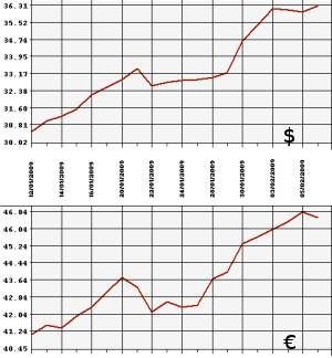 Курсы двух основных валют по отношению к рублю поменялись местами. Банк России на 6 февраля повысил официальный курс доллара США к рублю до 36,3095 рубля, а курс евро - понизил до 46,5924 рубля. Накануне на торгах ММВБ средневзвешенный курс доллара с расчетами "завтра" составил 36,3069 рубля, курс евро - 46,6500 рубля.По данным Банка России, на 6 февраля официальный курс доллара США, который до этого несколько дней подряд планомерно снижался, был увеличен почти на 30 копеек - с 36,0135 рубля до 36,3095 рубля. Официальный курс евро к рублю, несмотря на длительный период повышения, был снижен более чем на 24 копейки (с 46,8392 рубля до 46,5924 рубля). Стоимость бивалютной корзины (0,45 евро и 0,55 доллара) выросла на 5 копеек - с 40,8850 рубля до 40,9368 рубля.