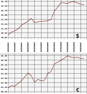 Центробанк снова снизил курсы двух основных валют. Банк России на 12 февраля уменьшил официальный курс доллара США к рублю до 35,8323 рубля, а курс евро - до 46,3312 рубля. На торгах ММВБ 11 февраля средневзвешенный курс доллара с расчетами "завтра" составил 35,5254 рубля, курс евро - 45,9486 рубля.Центральный банк снова снижает курсы сразу двух основных валют по отношению к рублю. По данным Банка России, на 12 февраля 2009 года официальный курс доллара США уменьшен более чем на 9 копеек - с 35,9285 рубля до 35,8323 рубля. Официальный курс евро к рублю также снижен - более чем на 3 копейки (с 46,3621 рубля до 46,3312 рубля). Стоимость бивалютной корзины (0,45 евро и 0,55 доллара) снизилась почти на 6 копеек - с 40,6236 рубля до 40,5568 рубля.