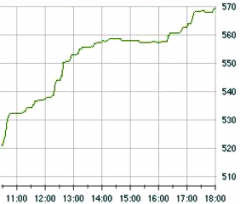 По итогам торгов индекс ММВБ снизился на 0,18% - до 726.7 пункта. РТС вырос на 2,94% - до отметки 620.58 пункта.