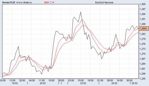 С утра 24 февраля на Forex европейские валюты продолжили укрепление. Евро поднялся по отношению к доллару США до уровня 1.2800, а фунт - до 1.4550. Но выступление главы ФРС воодушевило участников рынка, и доллар вернул часть утраченного.