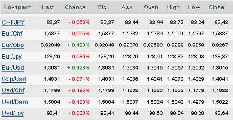 Во вторник во время торгов на азиатских площадках европейские валюты продолжили укрепление по отношению к доллару США. Опубликованный индекс института ZEW по настроениям в экономической сфере оказался выше, чем предполагали аналитики. Это и подтолкнуло котировки евро вверх относительно прочих валют. Причем на росте единой европейской валюты отразилось и заявление представителей Банка Швейцарии о возможности проведения повторной интервенции в случае укрепления франка. В результате дневной сессии максимум для пары евро/доллар составил 1.3033. Британский фунт в начале торгов в Европе отметился на максимуме 1.4137, а швейцарскому франку удалось укрепиться относительно доллара до уровня 1.1811.