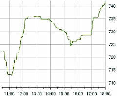 Индекс ММВБ прибавил к концу сессии 4,35% и составлял 851.35 пункта. Индекс РТС закрылся на уровне 740.94 пункта (+2,67%). Сессия четверга, по мнению аналитиков, обещает быть волатильной, а ее старт обусловят итоги торгов американских площадок.