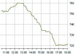 Индекс ММВБ по итогам дня снизился до уровня 763.36 пункта (-6,36%). РТС потерял 5,3% и достиг 682.91 пункта.