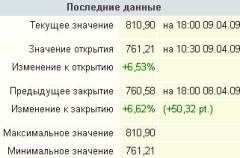 По итогам торгов индекс РТС подскочил на 6,62% до 810.9 пункта. ММВБ прибавил 5,7% и закрылся на отметке 922.68 пункта.