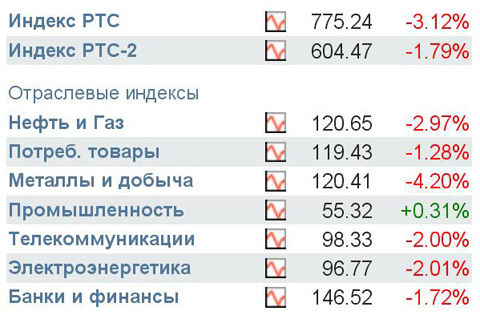 Во вторник в ходе торгов на российском фондовом рынке индекс РТС снизился на 3,12% и составил 775.24 пункта. Значение индекса ММВБ снизилось на 0,59% - до 877.21 пункта. По мнению экспертов, в ближайшие дни на отечественных площадках возможна коррекция, при этом рынок может потерять до 10-15%.