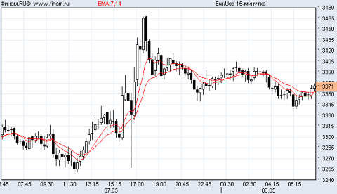 6 мая после снижения ЕЦБ базовой процентной ставки евро решительно укрепился против доллара. В ходе сессии он достиг максимальной за месяц отметки - 1,3469, но закончил день на уровне 1,3390. Фунт же после объявления решения Банка Англии утратил прежние позиции, откатившись к уровню 1,5020.