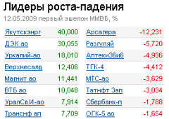 12 мая отечественный фондовый рынок демонстрировал уверенный рост. Индекс РТС прибавил 4,43% и закрылся на уровне 979,82. Индекс ММВБ вырос на 2,98% и достиг нового максимума - 1070 пунктов. Поддержку российским биржам обеспечили растущие цены на нефть.