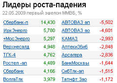 22 мая российский фондовый рынок вернулся в "зеленую зону": индекс РТС к закрытию торгов прибавил 1,2%, индекс ММВБ - 1,9%. В лидерах после четверговой коррекции вновь оказались Сбербанк, ВТБ, "Газпром". Фьючерсы на индекс РТС торгуются ниже текущего значения индекса, то есть участники ждут его падения.