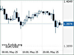 Пара евро/доллар 26 мая будет стремиться к отметке 1,4080, в то время как фунт/доллар нацелится на 1,60, швейцарский франк может двигаться в диапазоне 1,0810-1,0870, а пара доллар/иена - в интервале 95,10-94,50.