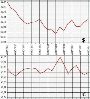 По итогам единой торговой сессии (ЕТС) ММВБ 16 июня, средневзвешенный курс доллара США с расчетами "завтра" составил 31,2398 рубля, что на 1 копейку больше результата предыдущей сессии - 31,2235 рубля. Средневзвешенный курс евро с расчетами "завтра" повысился почти на 3 копейки - с 43,3295 рубля до 43,3587 рубля.
