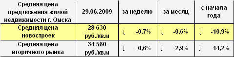 Средняя цена предложения жилой недвижимости Омска на 29.06.2009