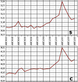 По итогам единой торговой сессии межбанковской валютной биржи 17 июля, средневзвешенный курс доллара США с расчетами "завтра" составил 31,7875 рубля, что на 6 с лишним копеек выше итога торгов 16 июля - 31,7282 рубля. Средневзвешенный курс евро с расчетами "завтра" увеличился с 44,7213 рубля до 44,8073 рубля.