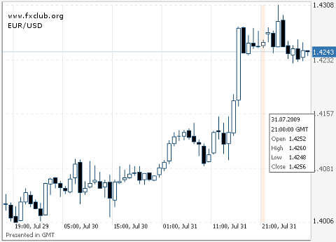 Как сообщает www.fxclub.org, в пятницу европейские валюты продолжили укрепляться против доллара. Уверенность трейдеров окрепла на позитивных новостях из США: уменьшение объема ВВП за 2-й квартал оказалось меньше ожидаемого (-1,0% против -1,5%), индекс Chicago PMI показал значение 43,4 (при прогнозе 43,0). Финансовые отчеты американских корпораций возродили надежды на скорый выход из рецессии, благодаря правительственной программе экономического стимулирования.