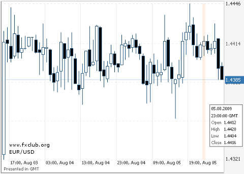 Как сообщает www.fxclub.org, вышедшие в среду данные показали изменение объема промышленного производства в Великобритании за год лучше прогнозируемого - +0,5%. Число безработных в США увеличилось на 371 тысячу человек, что также говорит о положительной динамике. На таком довольно позитивном новостном фоне основные валютные пары 5 августа оставались в ранее обозначенных диапазонах. Несмотря на отсутствие резких движений на рынке, евро и фунту удалось обновить многомесячные максимумы по отношению к американскому доллару: по паре евро/доллар он составил 1,4446, по паре фунт/доллар - 1,7041. Пара доллар/иена продолжила движение в канале 94,50-95,50.