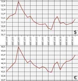 Итоги единой торговой сессии межбанковской валютной биржи показали аналогичную динамику. По итогам торгов ЕТС на ММВБ 7 августа средневзвешенный курс доллара США с расчетами "завтра" вырос на 39 копеек - с 31,2083 рубля до 31,5995 рубля. Средневзвешенный курс евро достиг стоимости 45,3804 рубля, что почти на 46 копеек выше результатов предыдущих торгов (44,9214 рубля 7 августа).