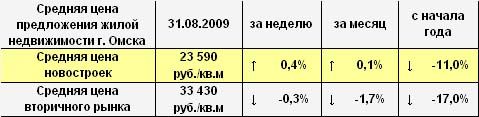 Средняя цена предложения жилой недвижимости Омска на 31.08.2009