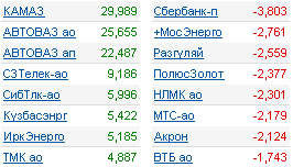 После трех дней роста российский рынок акций пошел вниз. Коррекционные настроения на зарубежных рынках нашли отклик и на отечественных. Падали котировки акций Сбербанка и ВТБ. Большинство "голубых фишек" оттолкнулось от уровней сопротивления. Индекс РТС снизился до 1163.76 пункта, индекс ММВБ - до 1154.12 пункта.