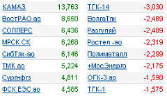 В понедельник торги на российском фондовом рынке начались на фоне негативных новостей из Азии и с сырьевых рынков, что вызвало снижение отечественных индексов на 1% и более. После позитивного открытия европейских бирж на отечественных площадках наблюдалась разнонаправленная динамика котировок. Лучше рынка выглядели акции "КамАЗа"- +13,763%. Хотя главный сборочный конвейер завода в очередной раз остановлен, поступила информация, что 5 октября он заработает.