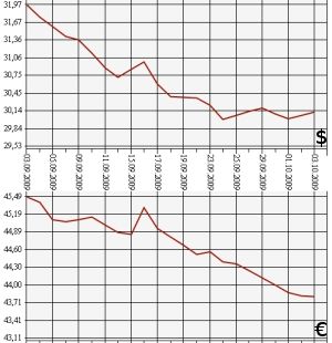 Банк России на 3 октября 2009 года повысил курс доллара США до 30,1240 рубля, а курс евро понизил - до 43,8154 рубля. На торгах ЕТС ММВБ средневзвешенный курс доллара с расчетами "завтра" вырос до 30,1804 рубля, курс евро - до 43,8675 рубля.