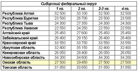 В некоторых регионах стоимость пересмотрена, но для сибирских норматив оставлен на уровне 3 квартала, который совпадает и с уровнем начала года. В частности, омский "квадратный метр" оценен в 27 тысяч 500 рублей. Для сравнения, в 4 квартале 2008 года этот норматив составлял 29 тысяч 200 рублей. В 2009 году он повышался только во втором квартале, однако уже в самом его начале был снижен (см. таблицу).