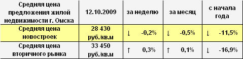 на вторичном рынке Омска с 27.07.09 по 12.10.09 г.