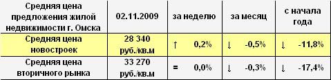 Средняя цена предложения жилой недвижимости Омска на 02.11.2009
