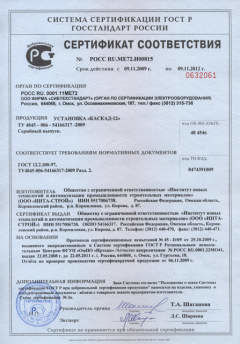 Пресс-центр "Института новых технологий и автоматизации промышленности строительных материалов" (ООО "ИНТА–СТРОЙ") сообщает, что после завершения сертификационных испытаний выпускаемых предприятием агрегатов Госстандарт РФ выдал на них "Сертификаты соответствия". Установка "Каскад 12" и дробилка молотковая ШЛ457 признаны соответствующими требованиям нормативных документов, подтверждена безопасность их промышленной эксплуатации. Как отмечают представители института, получение сертификатов "косвенно подтверждает и качество изготовления агрегатов, и соответствие реальных показателей заявленным техническим характеристикам в сочетании с технологическими возможностями".