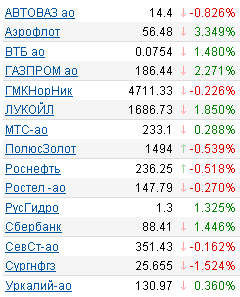 Из акций нефтяных компаний в положительной зоне торговался "Газпром" (+2,11% по итогам дня). Наибольшее падение в секторе отмечалось в бумагах "Роснефти" (-0,58%), "Сургутнефтегаза" (-1,35%).