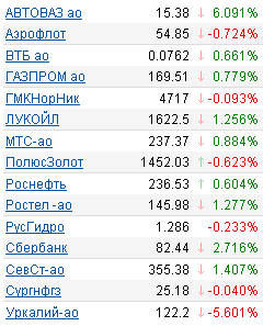 Таким образом, индекс РТС завершил день с ростом на 1,11% - до 1445.62 пункта, индекс ММВБ прибавил 0,87% и составил 1368.09 пункта.