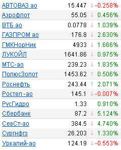 Неплохим ростом завершились минувшие торги и для акций "Газпрома", выросших более чем на 2%. "Для бумаг монополиста положительным является то, что проект "Газпрома" усиливает свои позиции. К этому проекту присоединилась Хорватия," - комментирует ситуацию Александр Павлючков, портфельный менеджер ИК "Финам".