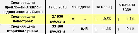 Средняя цена предложения жилой недвижимости Омска на 17.05.2010 г.
